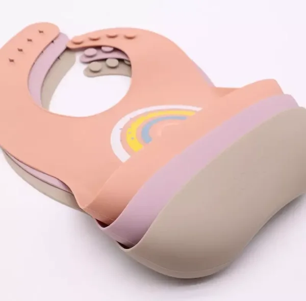 Bavoirs Silicone Lot de 3 - Beige Rose Pêche